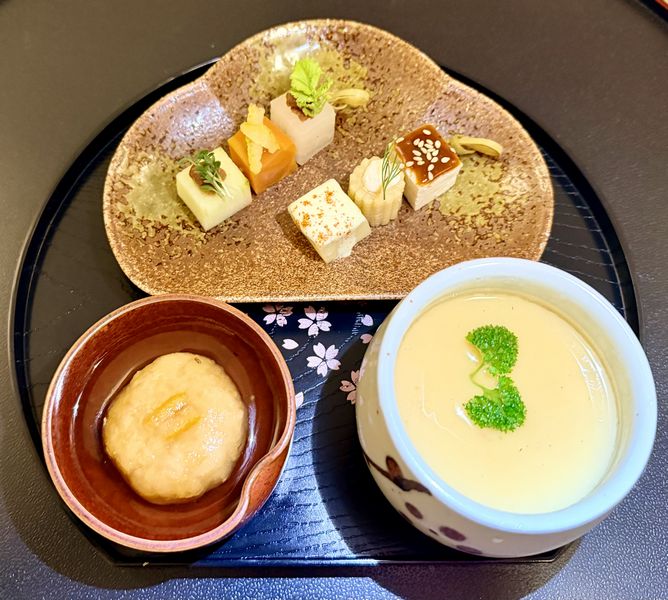 Lotuswurzel-Bällchen an vegetarischer Yuzu-Dashi-Sauce