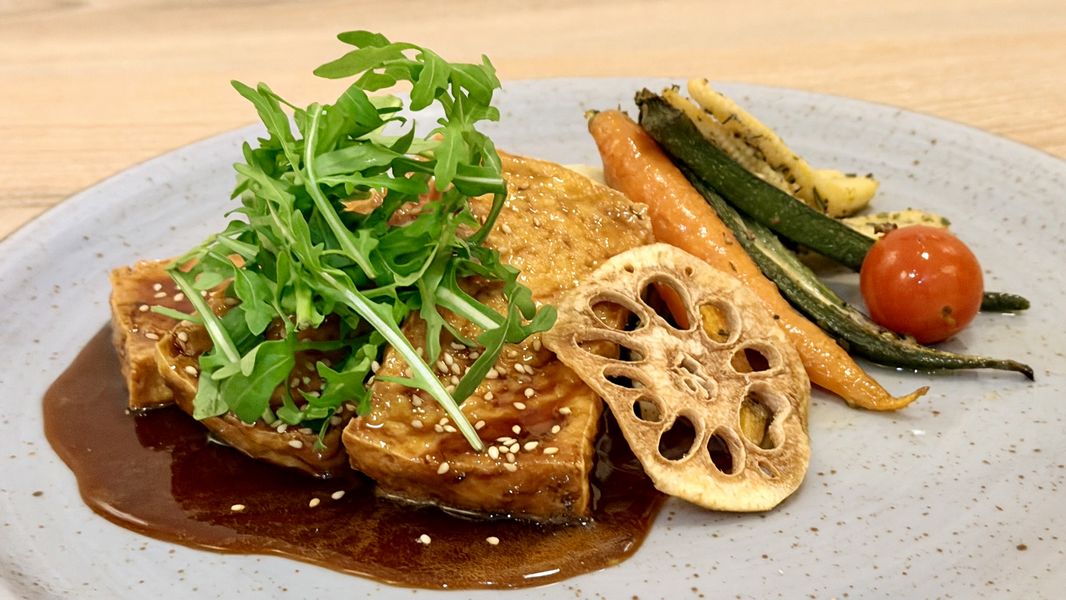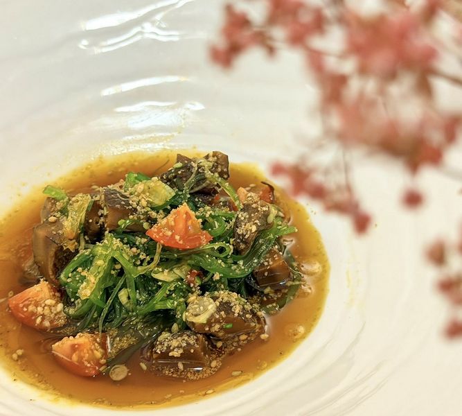 serviert mit aromatischer Wafu-Ume-Sauce und frischem Saisongemüse