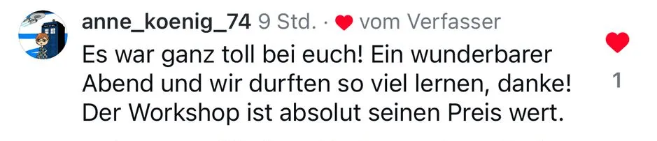 Der Sushi-Workshop war ein tolles Erlebnis. In einer kleinen, angenehmen Gruppe haben wir vier verschiedene Sorten Sushi zubereitet – alles unter fachkundiger und super freundlicher Anleitung. Die Betreuung war individuell und geduldig, ich habe richtig viel gelernt! Die Atmosphäre war entspannt und gleichzeitig sehr inspirierend. Als besonderes Highlight gab es zum Abschluss sogar ein Zertifikat auf Japanisch – eine schöne Erinnerung! Ich würde jederzeit wieder mitmachen. (Jutta H.)